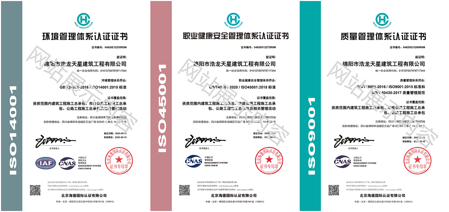 浩龍天星城建集團有限公司,2007年成立于“李白故鄉、中國科技城”—四川省綿陽市,企業注冊資本金5.0008億元。公司共有27項建筑業企業資質,其中國家一級資質11項,二級資質10項,三級資質5項,特種資質不分等級1項,類別涵蓋建筑、市政、水利、機電、隧道、起重設備安裝等基礎及未來發展重點專業。公司下設三個辦事處,業務范圍輻射全國,在建項目三十余個,累計完成產值超11億元。公司是綿陽市建筑施工企業協會副會長單位、綿陽遂寧商會會長級單位、綿陽首批建筑業綠卡企業,在綿陽本地企業中綜合實力名列前茅。